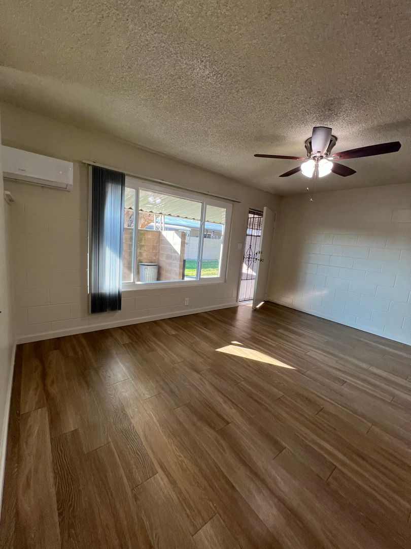 Each unit has a private covered patio with gate, open plan main room/kitchen, ample closet storage in bedroom, and bathroom located within bedroom. Each unit offered is newly renovated with energy efficient windows and Heating/Air.