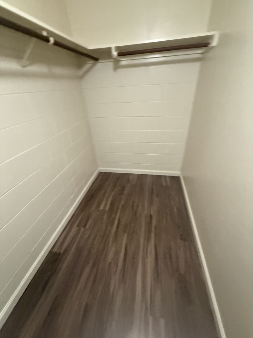 There is ample space in your large closet with built in cabinets perfect for linens and accessories.